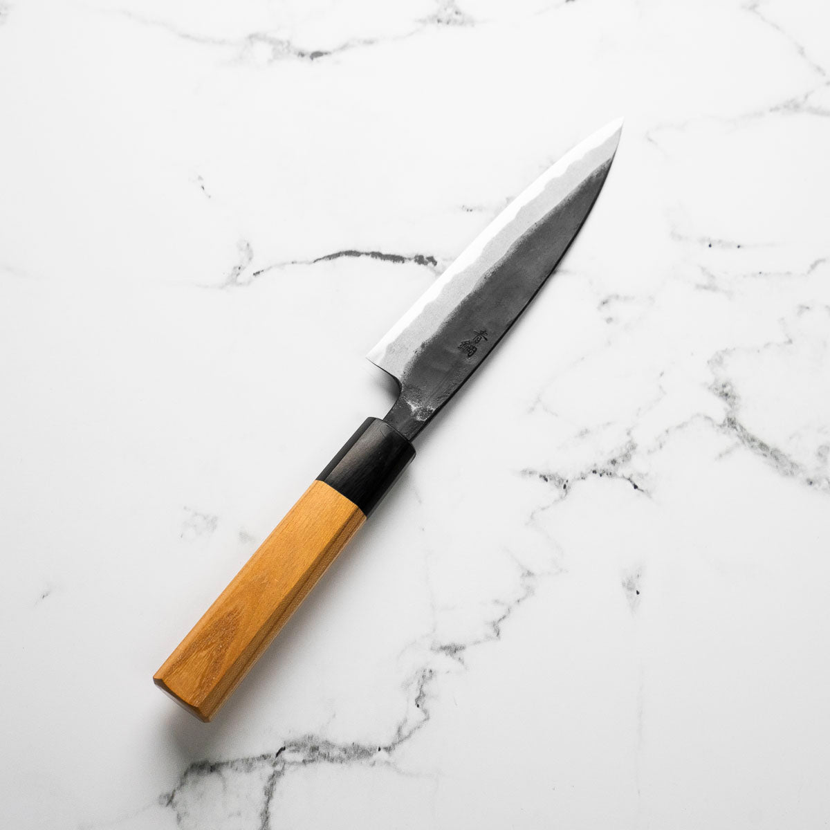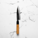 The Petty knife, a quintessential tool in Japanese cuisine, is a smaller utility knife used for precise, delicate tasks. Often considered a smaller sibling to the chef's knife, it excels in hand-held tasks like peeling, trimming, and intricate cutting. Its versatility makes it an essential for detailed culinary work.