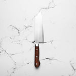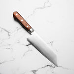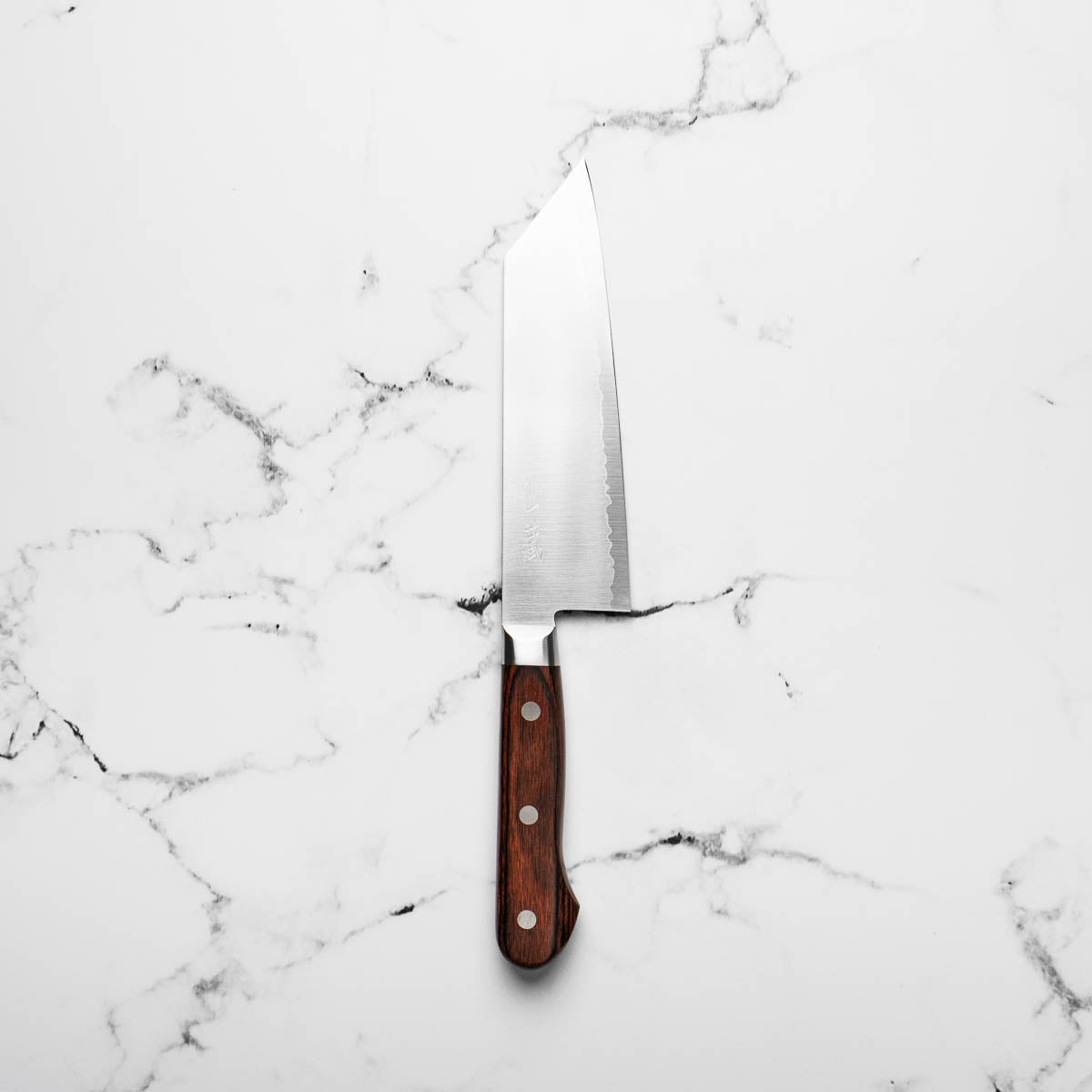 The Bunka knife, a versatile and traditional Japanese kitchen tool, features a distinctive, angular tip and a wide blade. It's designed for precision tasks like slicing, dicing, and chopping. Ideal for handling vegetables, meat, and fish, the Bunka is a multifunctional knife celebrated for its utility and unique aesthetic.