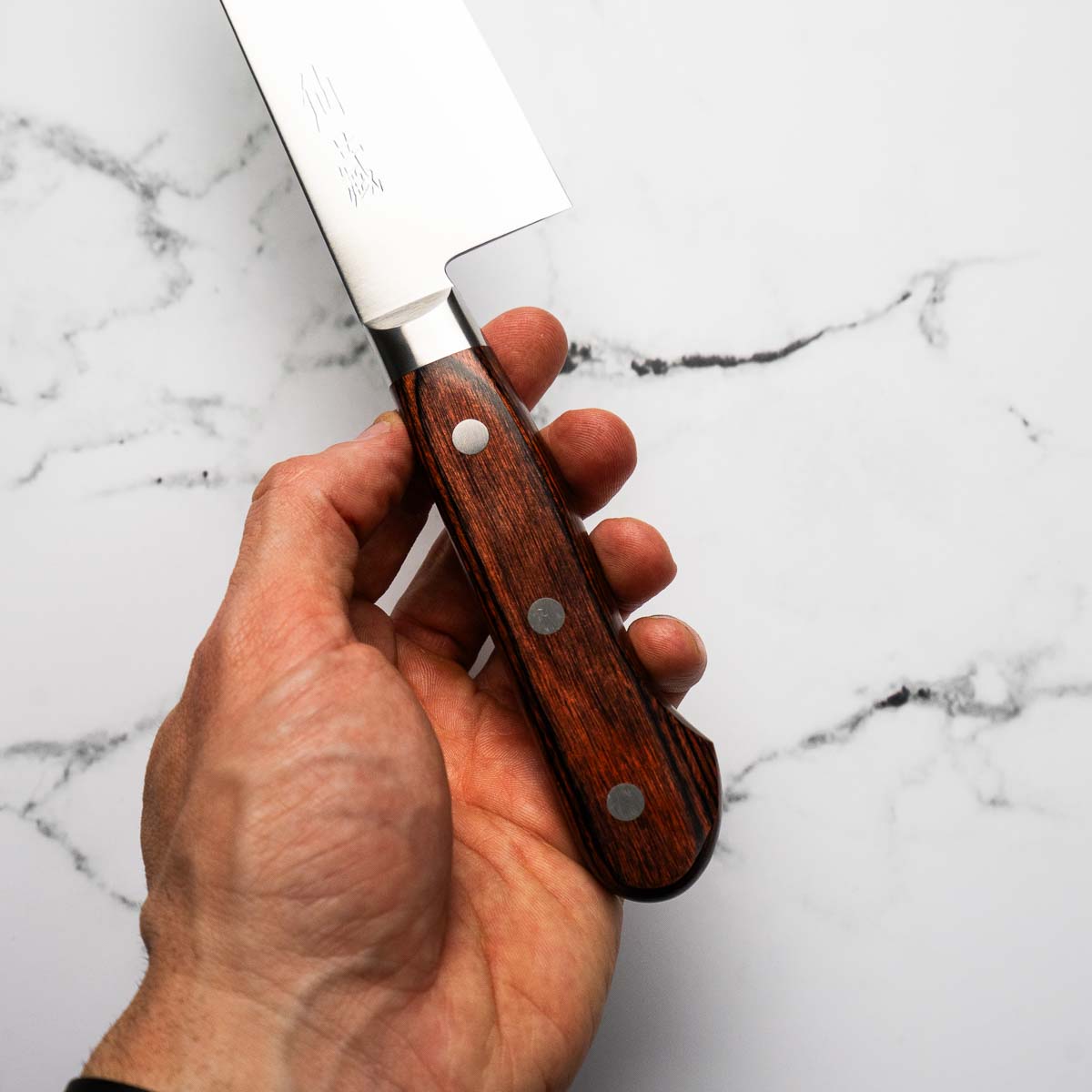 Japanese AUS-10 steel is a high-quality stainless steel renowned for its balance of toughness and durability while still holding a good edge. It is on the softer side of most Japanese Stainless Steels, slightly softer than VG10 or Ginsan. Enriched with vanadium, it achieves a superior durability, making it ideal for crafting durable, sharp knives that withstand rigorous use.