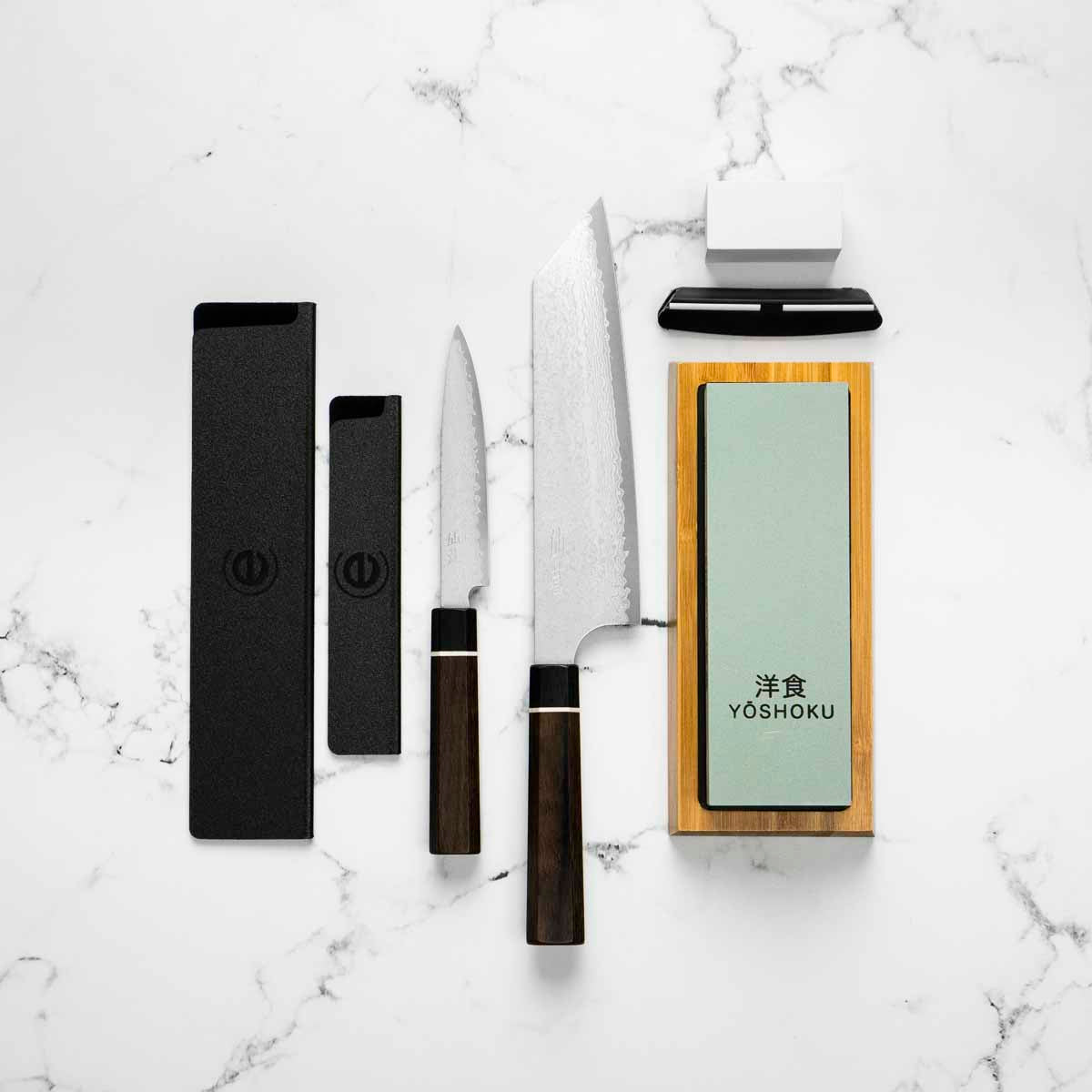 Senzo Black VG10 Damascus - 2 Knife Kiritsuke Set with Whetstone