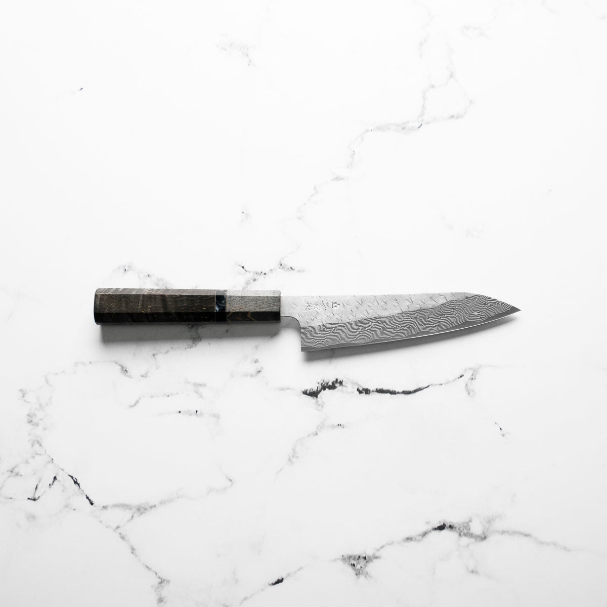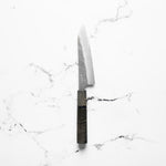The Petty knife, a quintessential tool in Japanese cuisine, is a smaller utility knife used for precise, delicate tasks. Often considered a smaller sibling to the chef's knife, it excels in hand-held tasks like peeling, trimming, and intricate cutting. Its versatility makes it an essential for detailed culinary work.