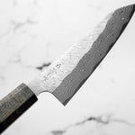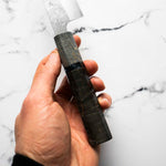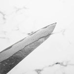 Nigara Hamono are truly some of the most experienced knifemakers in Japan. Now on their 8th generation of blacksmiths, they are masters at stainless damascus forging and heat treatment. The Anmon Damascus we have available have a matte finish and are polished underneath, resulting in a brilliant visual contrast.