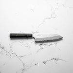 The Santoku knife, a classic in Japanese kitchens, translates to "three virtues," symbolizing its proficiency in slicing, dicing, and mincing. With a shorter, versatile blade and a balanced design, it's ideal for a range of tasks, from cutting meat to chopping vegetables, making it a beloved all-purpose tool.