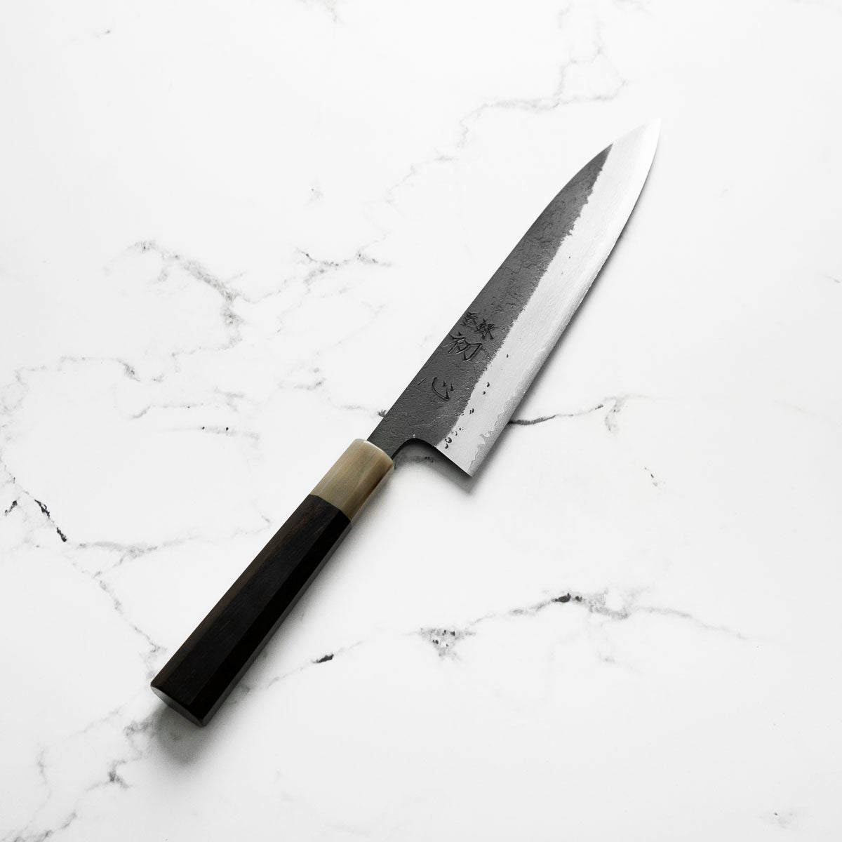 Hatsukokoro Shinkiro Blue Super Damascus Kurouchi Petty 150mm - Ebony & Blonde