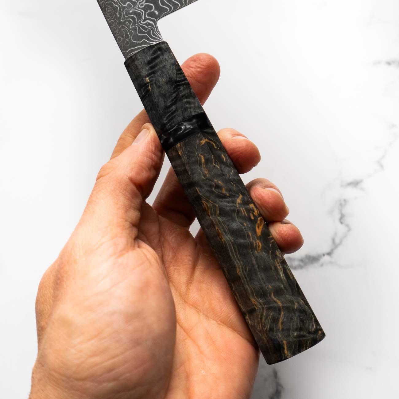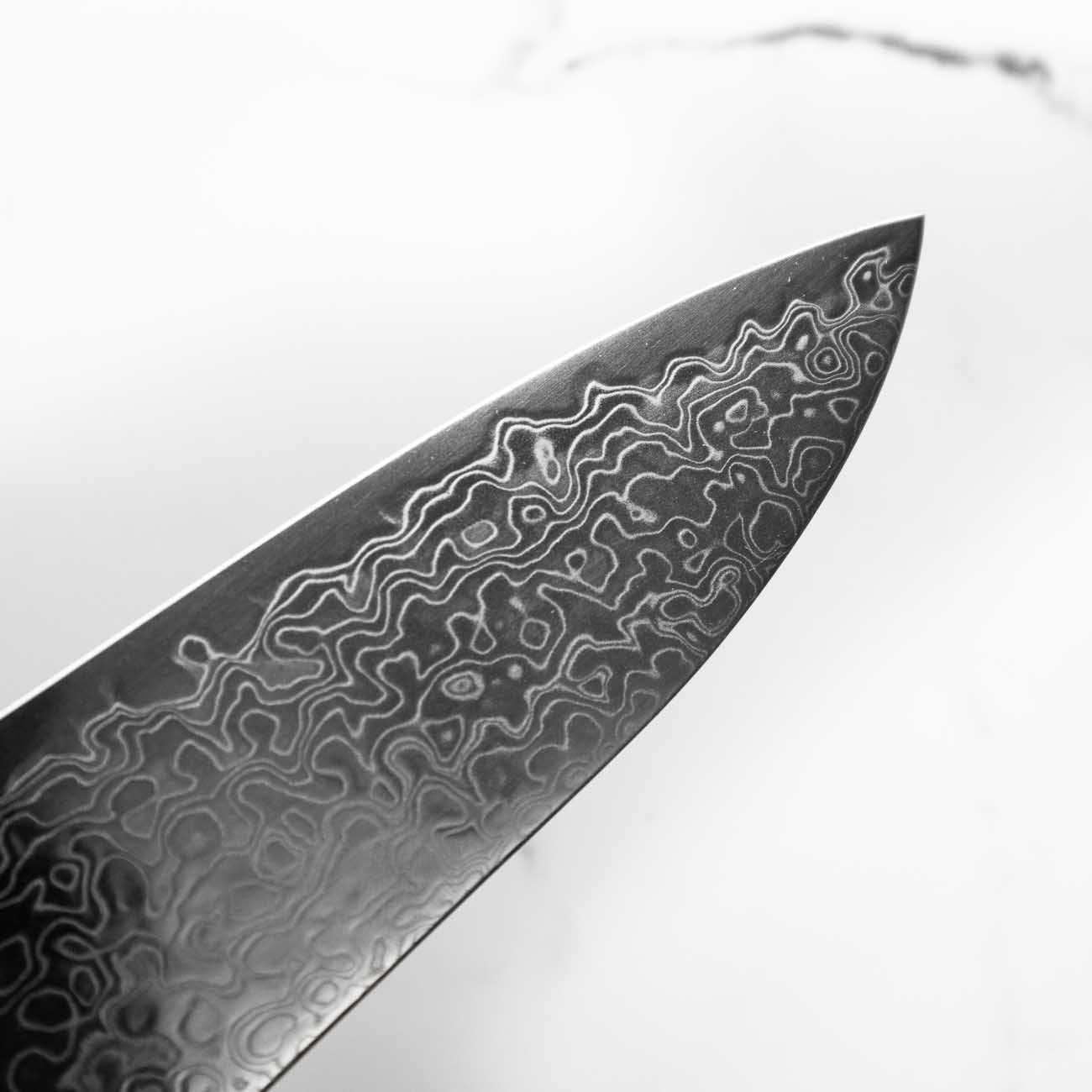 Japanese SG2, also known as R2 steel, is a high-end, powdered metallurgy stainless steel and one of the finest knife-making steels available in Japan. It is a favourite of many for its exceptional hardness and edge retention. Its fine, uniform grain structure enables razor-sharp edges, all the while holding an edge for much longer than Carbon steel knives, without needing to be concerned about rust appearing.