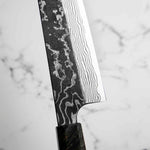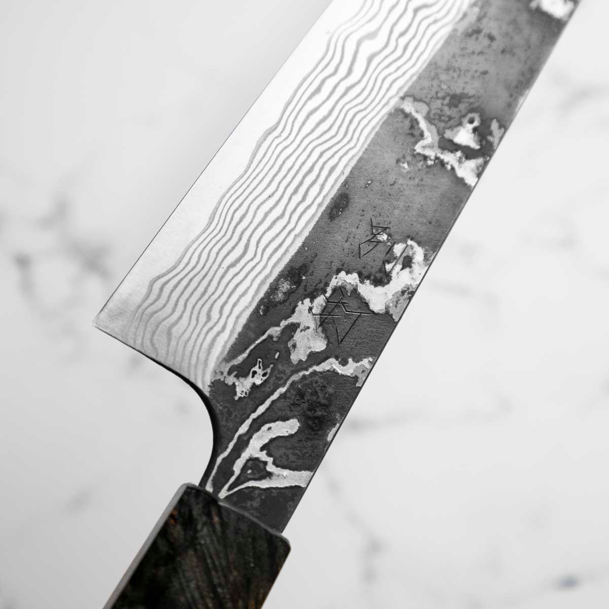 Japanese SLD steel is a semi-stainless steel crafted through advanced metallurgy. It is used often in Sanjo knives, has a non-chippy edge and is extremely tough. This high-carbon steel, enriched with chromium and molybdenum, offers excellent performance, but be mindful not to leave it wet for extended periods.