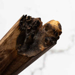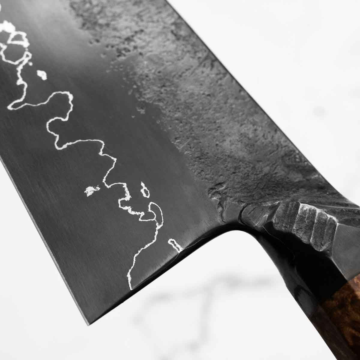 This knife is made from a high-carbon steel and as such, will require a little more care than a regular off-the-shelf knife. It must be dried shortly after use, as prolonged exposure to moisture can cause rust spots to appear. A very light coat of oil during storage also helps to prevent rust spots. A patina (colouration and seasoning of the steel) will occur with use.