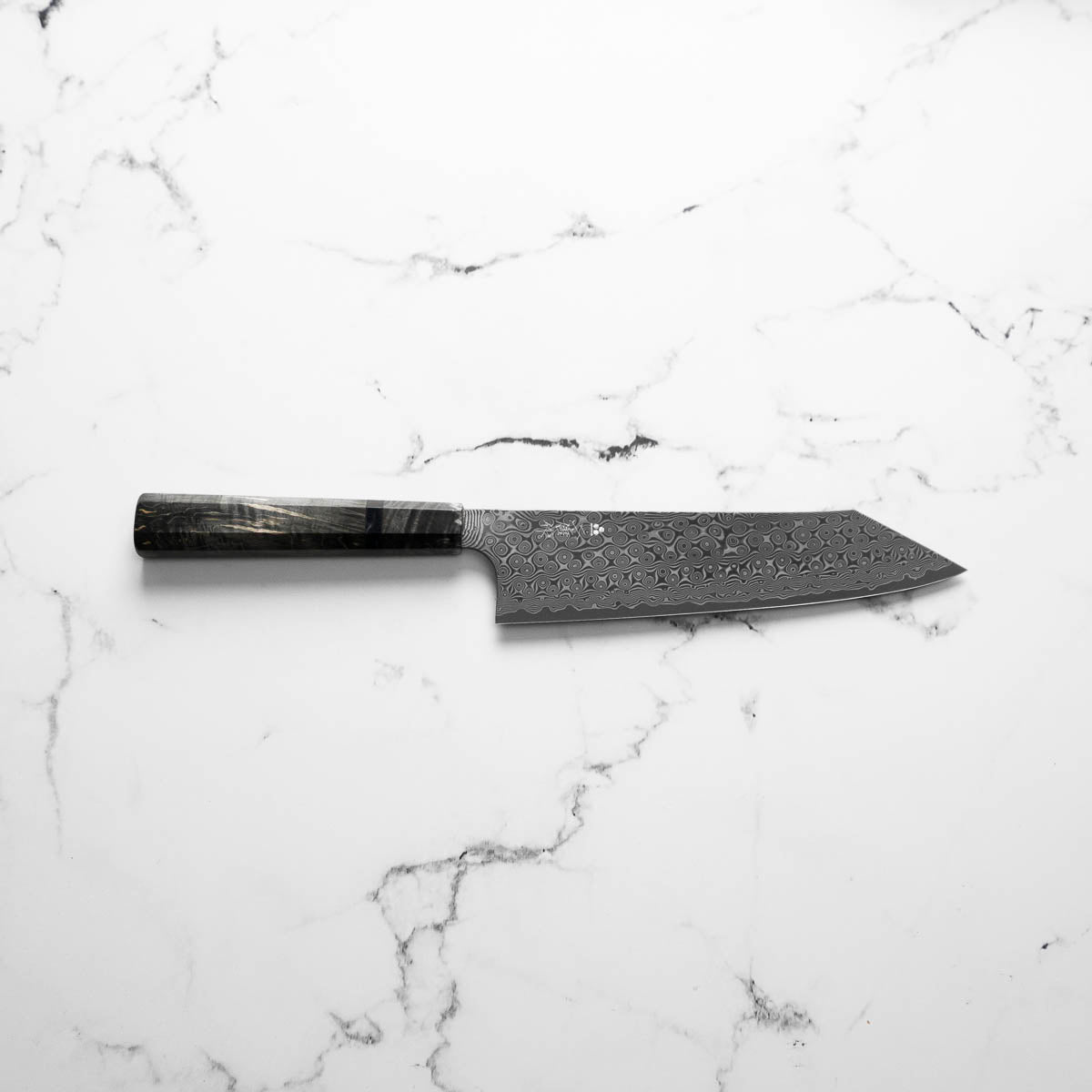 Nigara Hamono are truly some of the most experienced knifemakers in Japan. Now on their 8th generation of blacksmiths, they are masters at stainless damascus forging and heat treatment. The Anmon Damascus we have available have a matte finish and are polished underneath, resulting in a brilliant visual contrast.