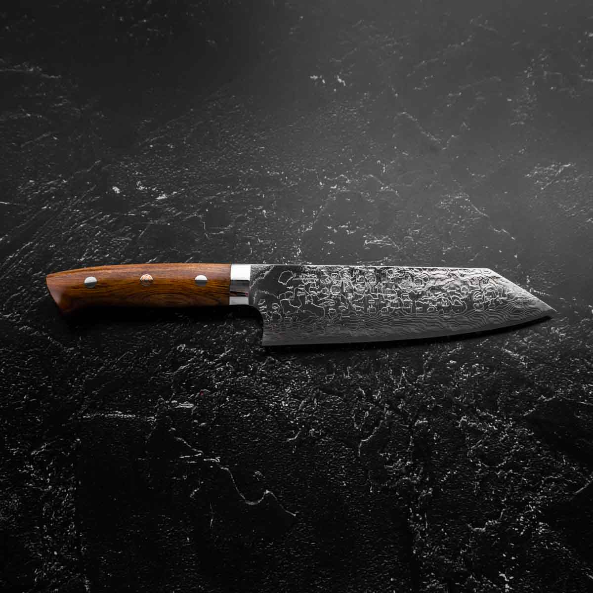 The Bunka knife, a versatile and traditional Japanese kitchen tool, features a distinctive, angular tip and a wide blade. It's designed for precision tasks like slicing, dicing, and chopping. Ideal for handling vegetables, meat, and fish, the Bunka is a multifunctional knife celebrated for its utility and unique aesthetic.