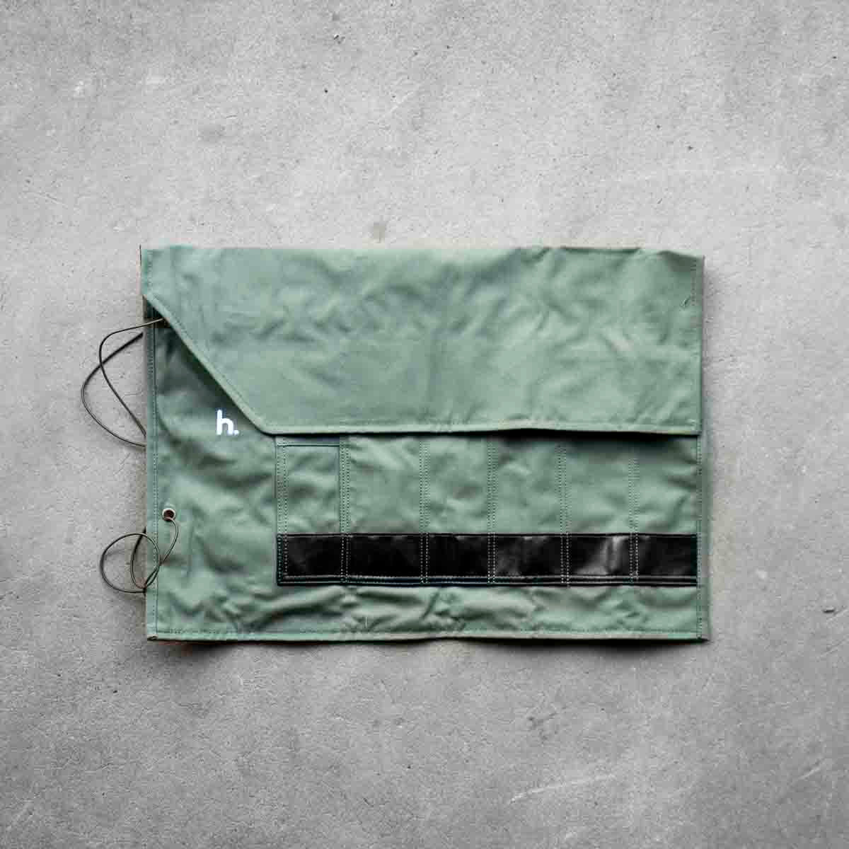 Canvas pouch with velcro straps for storing up to 10 chef tools,