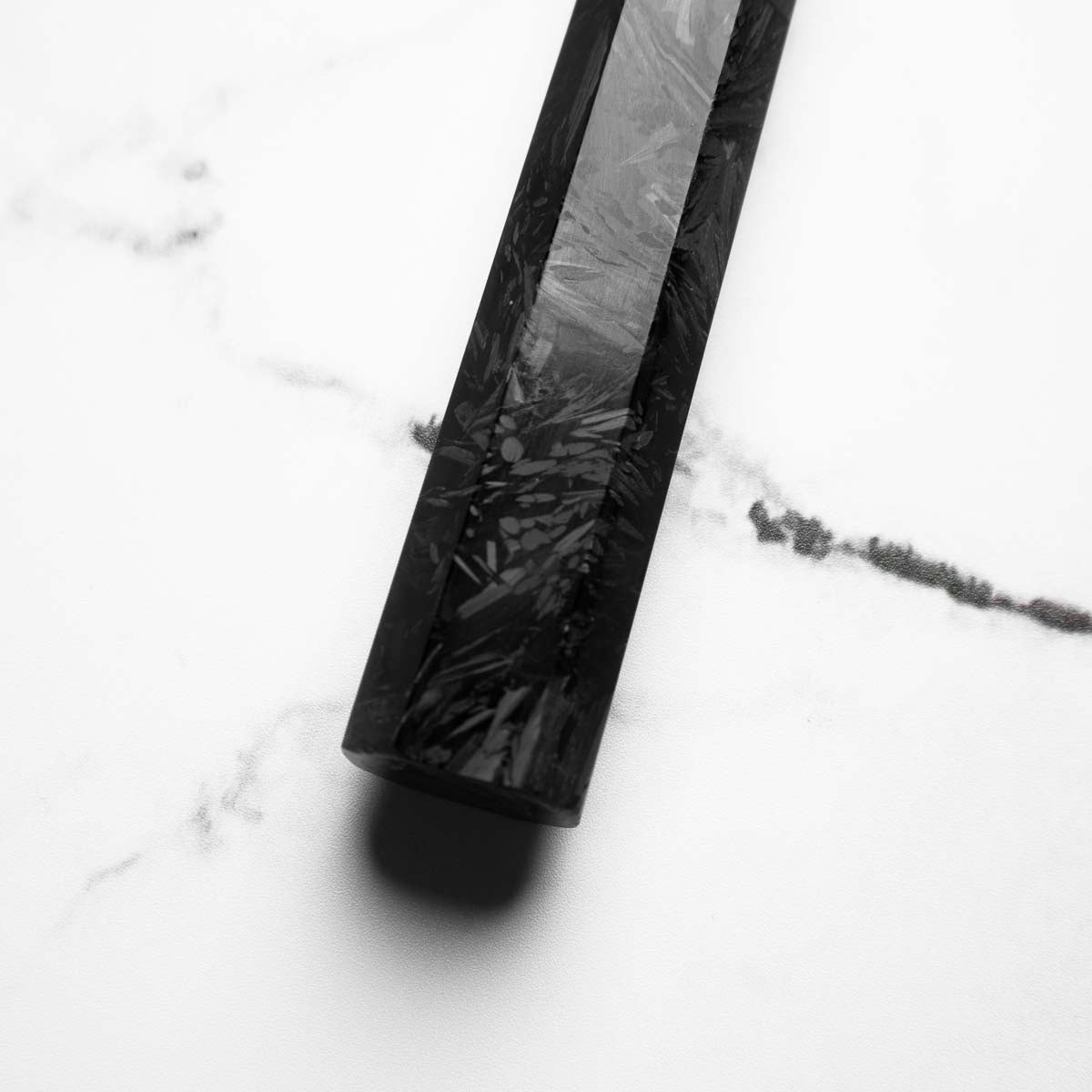 Fancy up your kitchen knives with a custom handle! This stunning Octagon handle is crafted from flecks of Carbon fibre encased in durable resin, with a synthetic spacer.