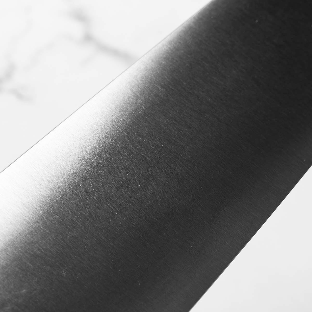 Japanese SG2, also known as R2 steel, is a high-end, powdered metallurgy stainless steel and one of the finest knife-making steels available in Japan. It is a favourite of many for its exceptional hardness and edge retention. It's fine, uniform grain structure enables razor-sharp edges, all the while holding an edge for much longer than Carbon steel knives, without needing to be concerned about rust appearing.