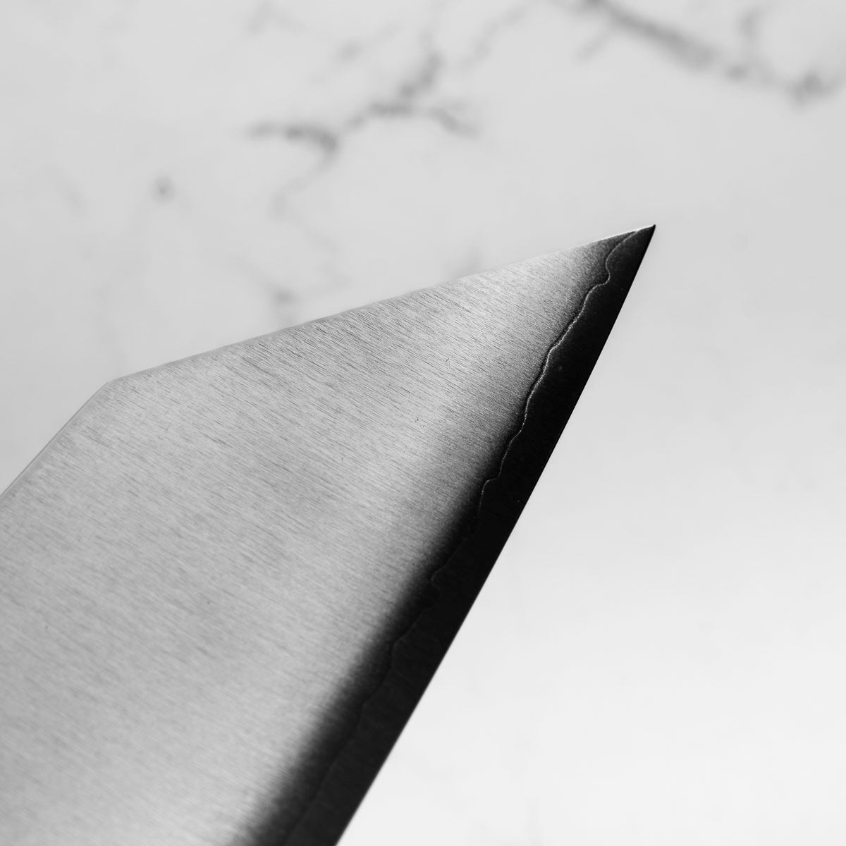 The Bunka knife, a versatile and traditional Japanese kitchen tool, features a distinctive, angular tip and a wide blade. It's designed for precision tasks like slicing, dicing, and chopping. Ideal for handling vegetables, meat, and fish, the Bunka is a multifunctional knife celebrated for its utility and unique aesthetic.