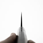 The Bunka knife, a versatile and traditional Japanese kitchen tool, features a distinctive, angular tip and a wide blade. It's designed for precision tasks like slicing, dicing, and chopping. Ideal for handling vegetables, meat, and fish, the Bunka is a multifunctional knife celebrated for its utility and unique aesthetic.