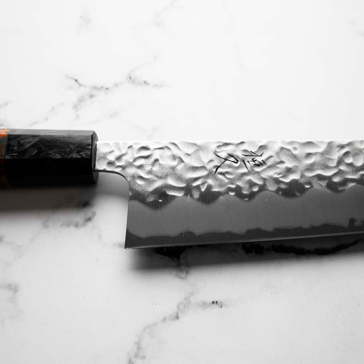 Unit price per180mm Blue 2 Core, Stainless Tsuchime Clad Bunka Knife.
