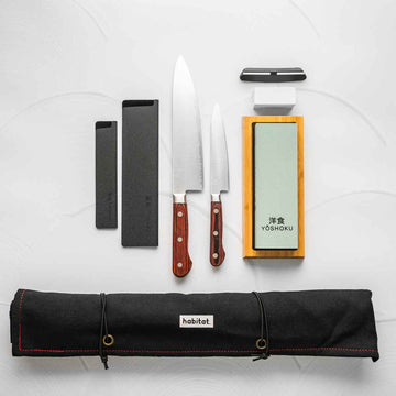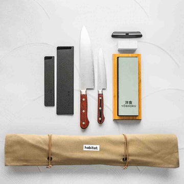*Bundle includes Combination Whetstone, Base, Cleaning Stone, Guide Clip, Edge Guards, and Tan Habitat 6pc Knife Roll