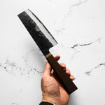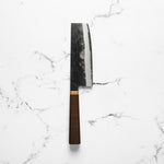 The Nakiri knife, revered in Japanese culinary traditions, is engineered for exceptional vegetable cutting. Featuring a distinct, straight-edged, and rectangular blade, it excels in creating uniform, precise cuts and aesthetic presentation. Its technical design ensures efficiency and precision, making it a valuable tool for both professional chefs and home cooks.
