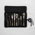 Includes Large & Small Quenelle Spoons, Plating Spatula, Plating Tweezer Bundle, Plating Spoon, Saucing Spoon, Fishbone Tweezers and Canvas Tool Pouch