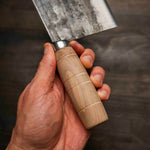 A Chinese cleaver, known as a Cai Dao, is a multipurpose kitchen knife traditional in Chinese cuisine. Characterized by its large, rectangular blade, it excels in chopping, slicing, and mincing. Despite its robust appearance, it's designed for precision tasks, from slicing meat to finely mincing herbs and vegetables.