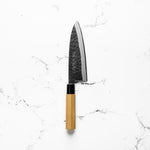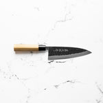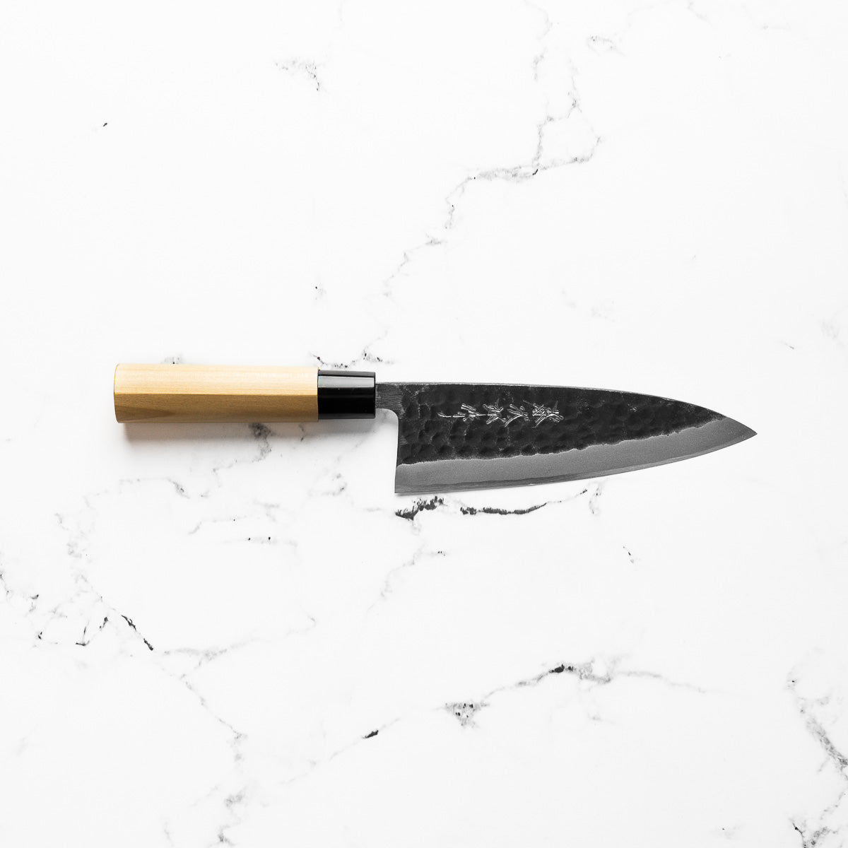 The Deba knife, deeply rooted in Japanese culinary tradition, is a robust, single-bevel knife (sometimes double) primarily designed for fileting fish. Its thick, heavy blade effortlessly glides through fish bones and joints, while preserving delicate flesh. Ideal for seafood preparation, the Deba is a staple in Japanese kitchens for its precision and strength.