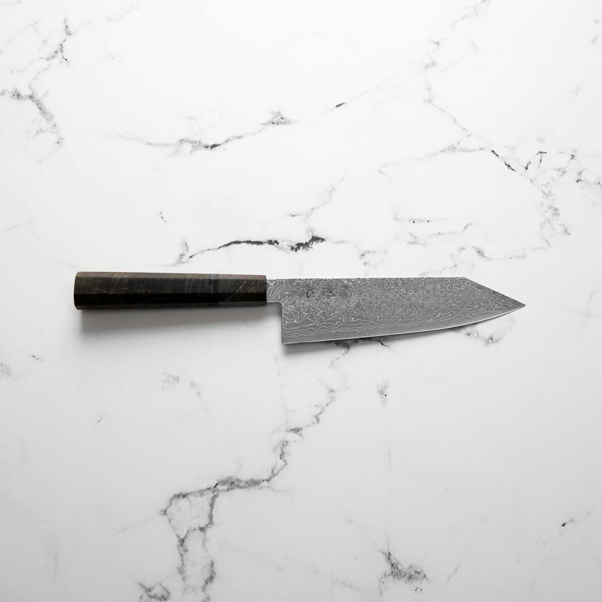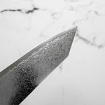 The Bunka knife, a versatile and traditional Japanese kitchen tool, features a distinctive, angular tip and a wide blade. It's designed for precision tasks like slicing, dicing, and chopping. Ideal for handling vegetables, meat, and fish, the Bunka is a multifunctional knife celebrated for its utility and unique aesthetic.