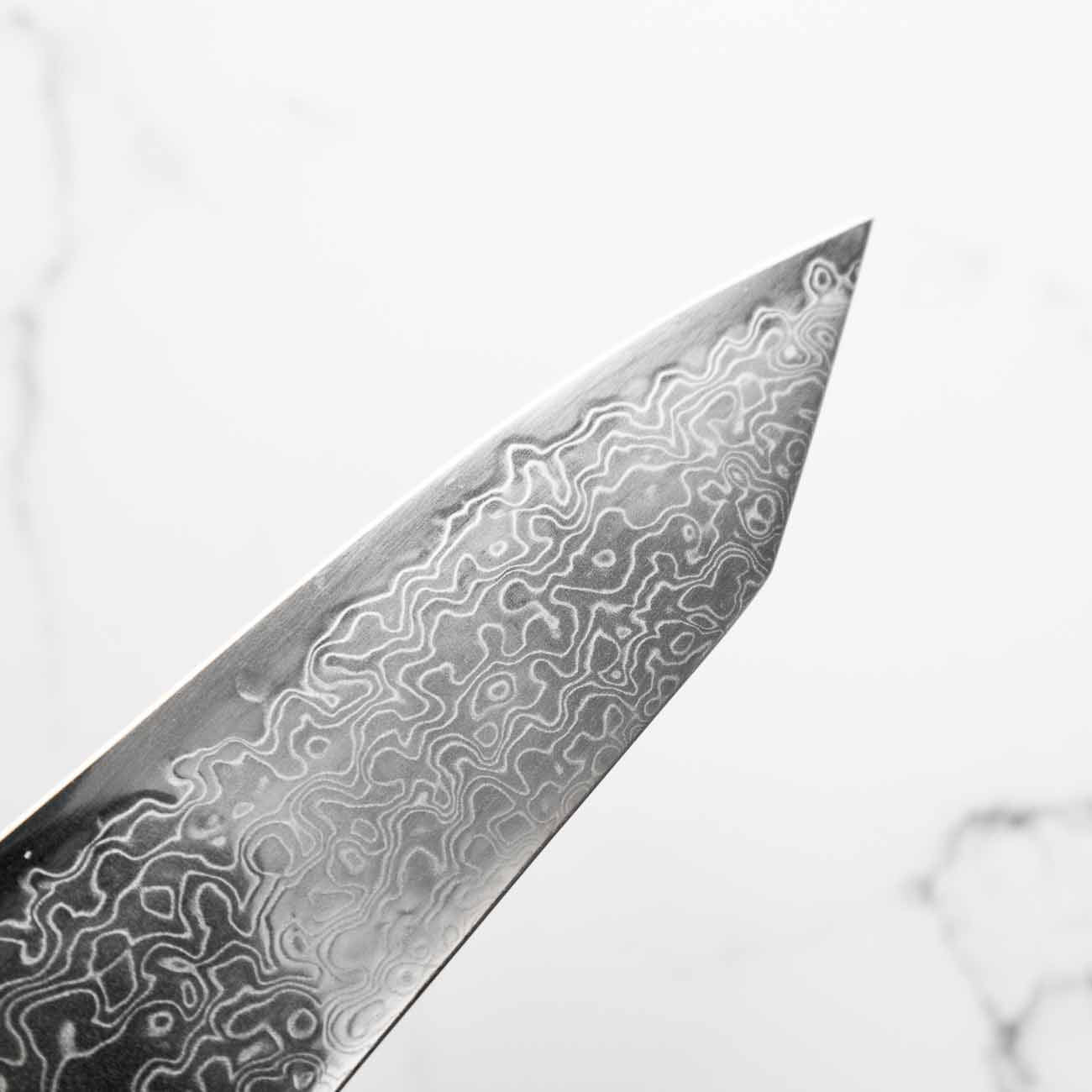 Japanese SG2, also known as R2 steel, is a high-end, powdered metallurgy stainless steel and one of the finest knife-making steels available in Japan. It is a favourite of many for its exceptional hardness and edge retention. Its fine, uniform grain structure enables razor-sharp edges, all the while holding an edge for much longer than Carbon steel knives, without needing to be concerned about rust appearing.