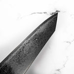 Japanese SG2, also known as R2 steel, is a high-end, powdered metallurgy stainless steel and one of the finest knife-making steels available in Japan. It is a favourite of many for its exceptional hardness and edge retention. Its fine, uniform grain structure enables razor-sharp edges, all the while holding an edge for much longer than Carbon steel knives, without needing to be concerned about rust appearing.