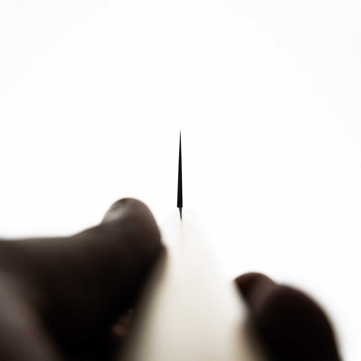 This knife is made from a high-carbon steel and as such, will require a little more care than a regular off-the-shelf knife. It must be dried shortly after use, as prolonged exposure to moisture can cause rust spots to appear. A very light coat of oil during storage also helps to prevent rust spots. A patina (coloration and seasoning of the steel) will occur with use.