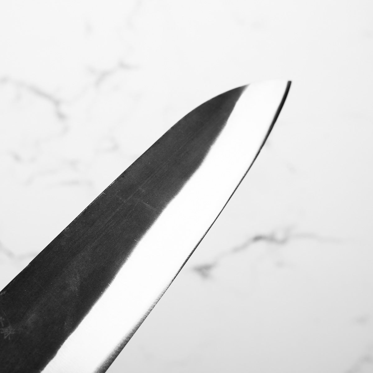 This knife is made from a high-carbon steel and as such, will require a little more care than a regular off-the-shelf knife. It must be dried shortly after use, as prolonged exposure to moisture can cause rust spots to appear. A very light coat of oil during storage also helps to prevent rust spots. A patina (colouration and seasoning of the steel) will occur with use.