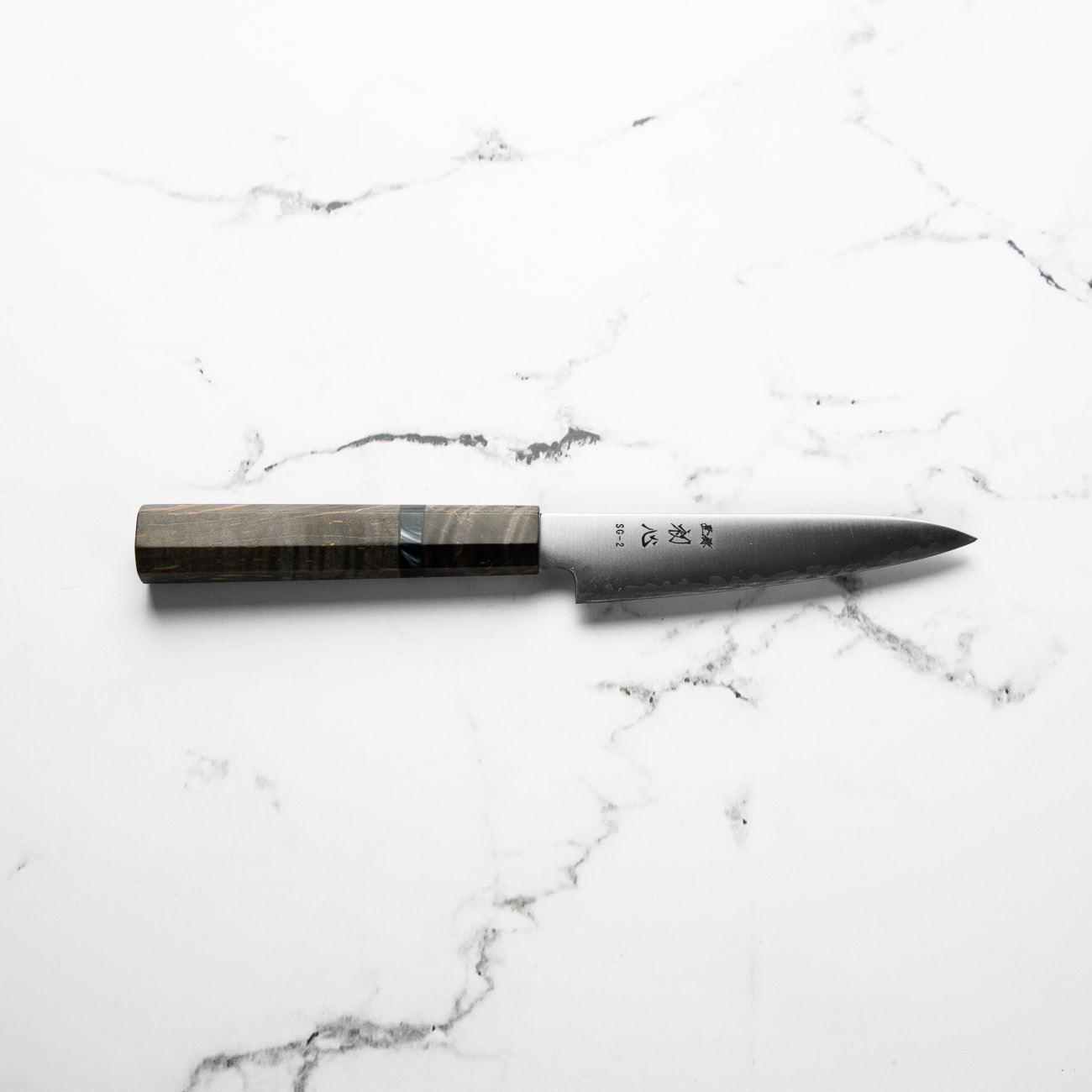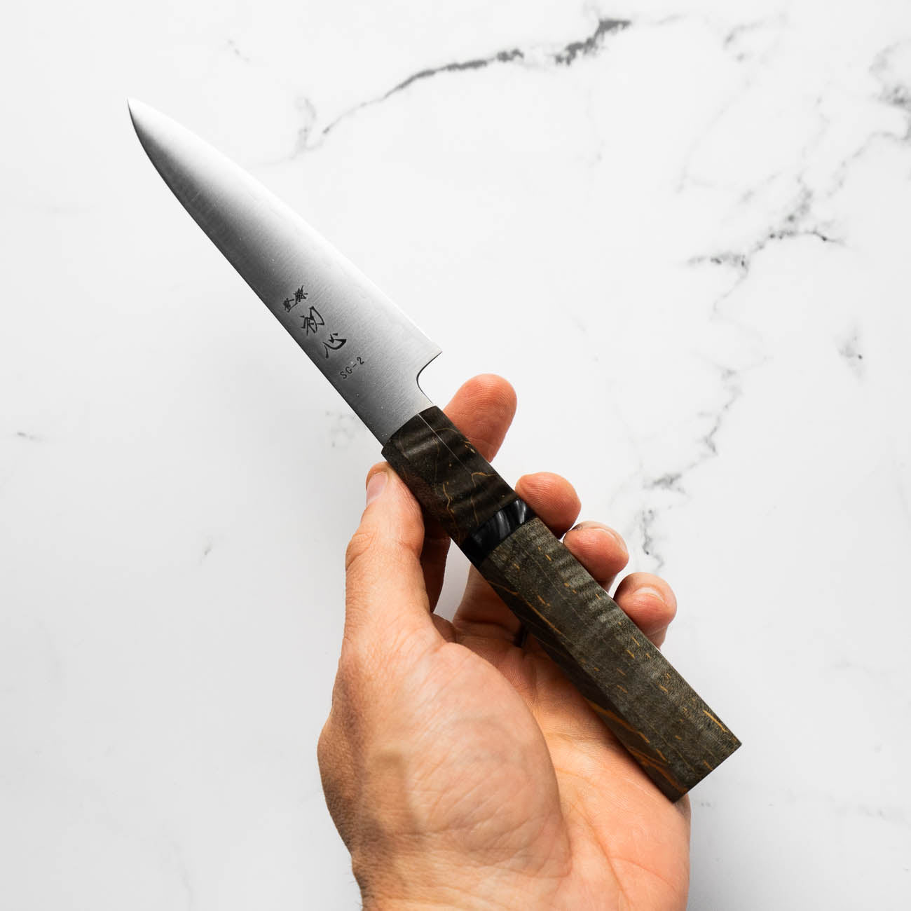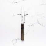 The Petty knife, a quintessential tool in Japanese cuisine, is a smaller utility knife used for precise, delicate tasks. Often considered a smaller sibling to the chef's knife, it excels in hand-held tasks like peeling, trimming, and intricate cutting. Its versatility makes it an essential for detailed culinary work.