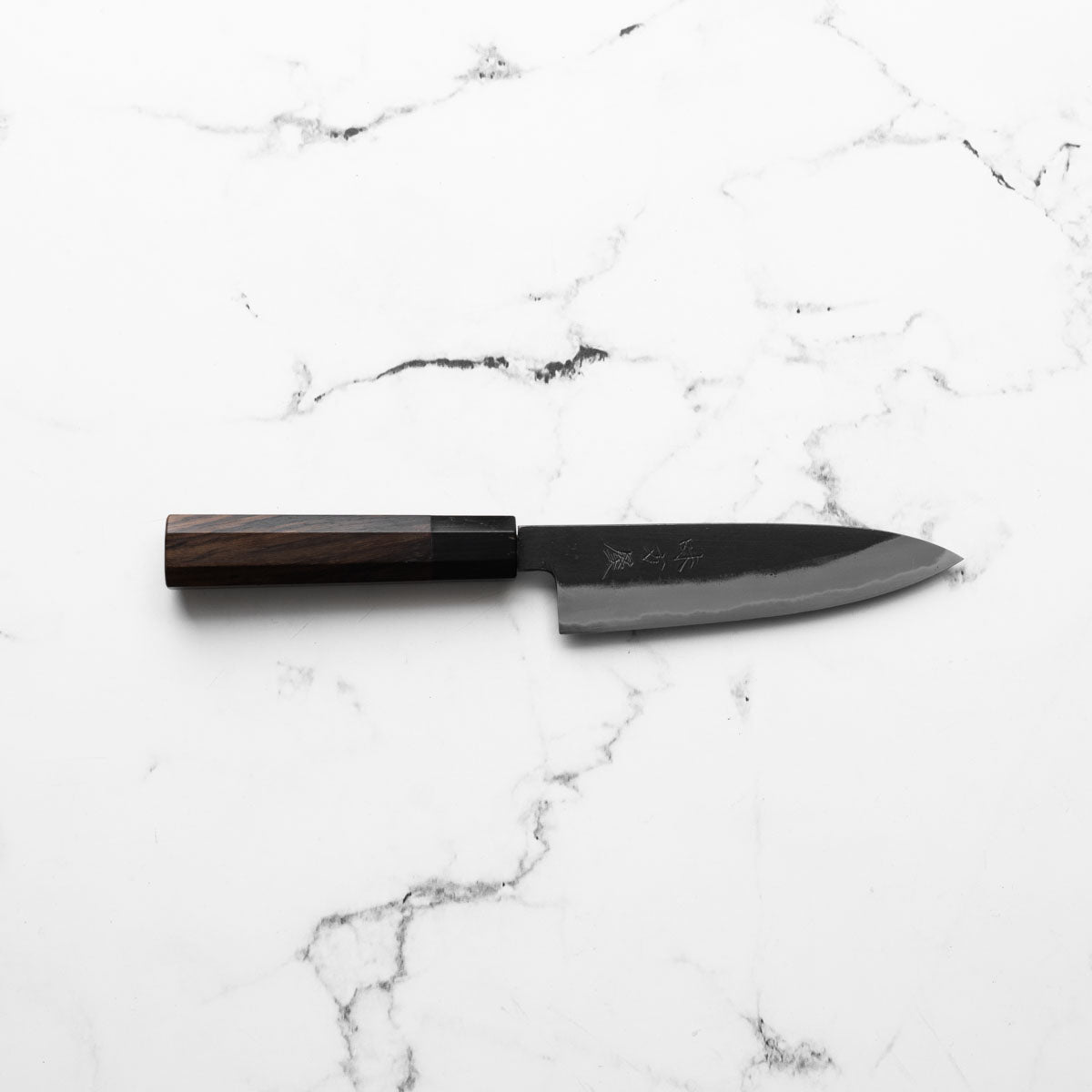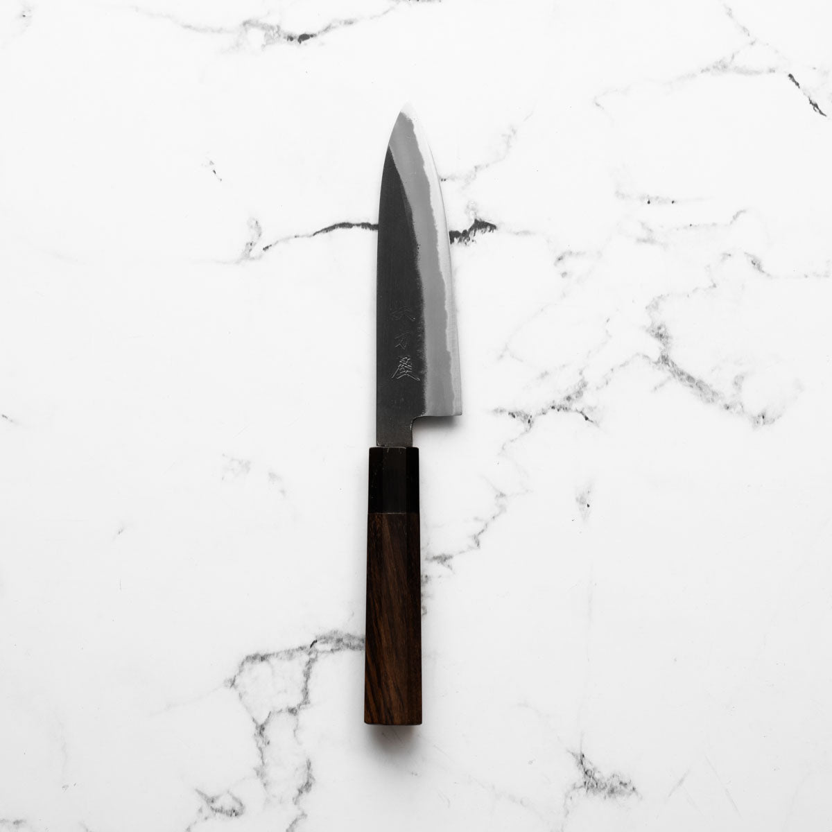 Mutsumi Hinoura Ajikataya White 2 Petty 135mm - Rosewood & Black Horn