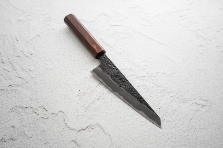 | Blade Material: | Blue 2 Carbon Steel core + Soft Iron Tsuchime Kurouchi Finish |