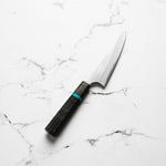 The Honesuki knife, a traditional Japanese boning knife, is uniquely crafted for poultry butchery. Its triangular, sturdy blade is adept at maneuvering around bones, joints, and tendons, offering precise control. With a pointed tip for detailed work, the Honesuki is indispensable for chefs specializing in meat preparation.