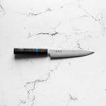 The Petty knife, a quintessential tool in Japanese cuisine, is a smaller utility knife used for precise, delicate tasks. Often considered a smaller sibling to the chef's knife, it excels in hand-held tasks like peeling, trimming, and intricate cutting. Its versatility makes it an essential for detailed culinary work.