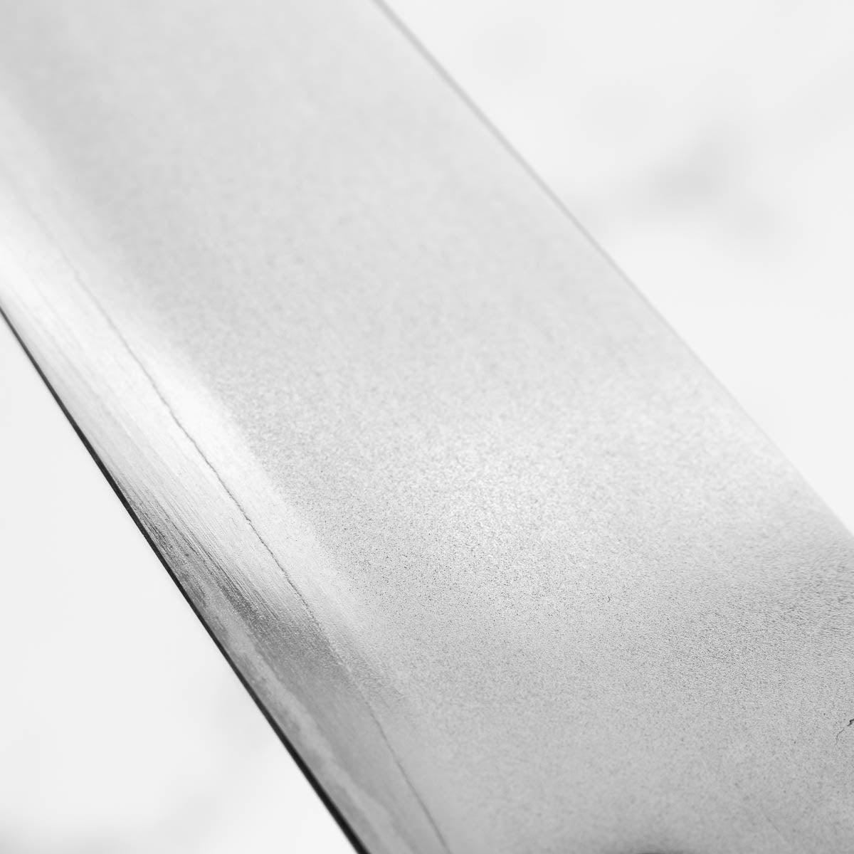 This knife is made from a high-carbon steel and as such, will require a little more care than a regular off-the-shelf knife. It must be dried shortly after use, as prolonged exposure to moisture can cause rust spots to appear. A very light coat of oil during storage also helps to prevent rust spots. A patina (colouration and seasoning of the steel) will occur with use.