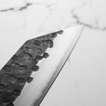 The Bunka knife, a versatile and traditional Japanese kitchen tool, features a distinctive, angular tip and a wide blade. It's designed for precision tasks like slicing, dicing, and chopping. Ideal for handling vegetables, meat, and fish, the Bunka is a multifunctional knife celebrated for its utility and unique aesthetic.