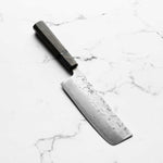 The Nakiri knife, revered in Japanese culinary traditions, is engineered for exceptional vegetable cutting. Featuring a distinct, straight-edged, and rectangular blade, it excels in creating uniform, precise cuts and aesthetic presentation. Its technical design ensures efficiency and precision, making it a valuable tool for both professional chefs and home cooks.