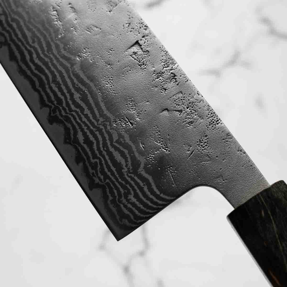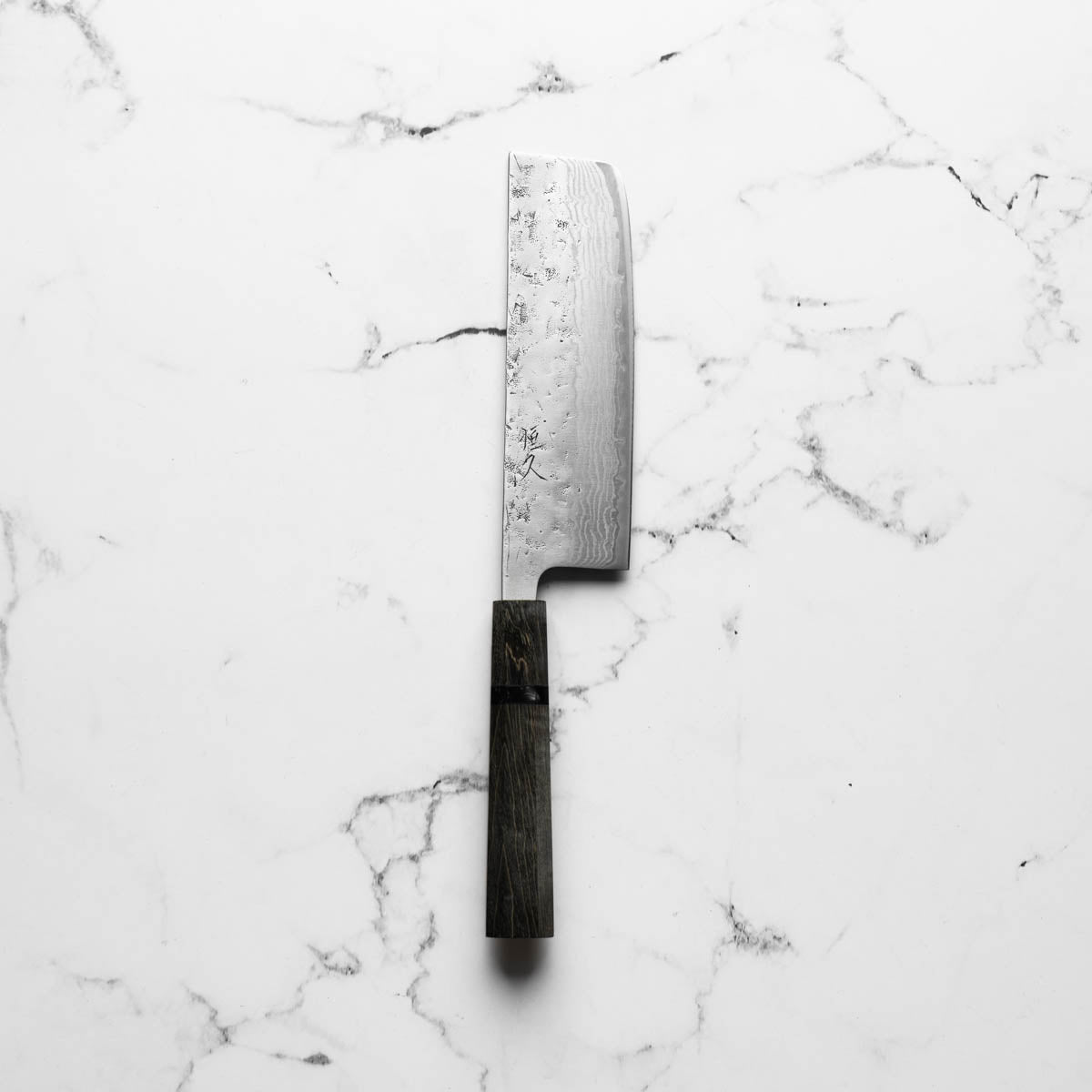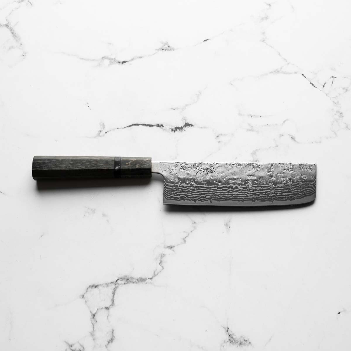 Tsunehisa Swedish Stainless Washiji Damascus Nakiri - Dark Maple
