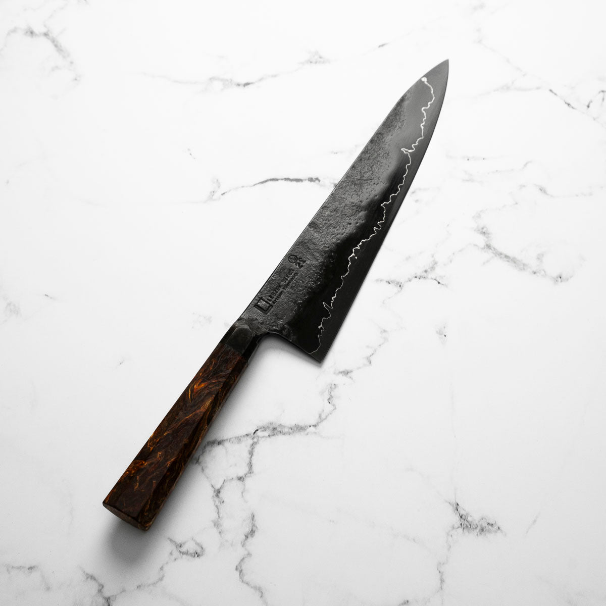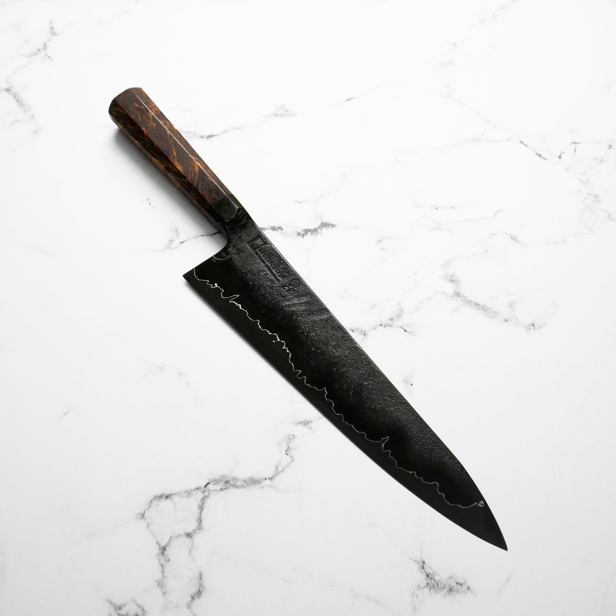 Unit price perNigara Hamono "Kagetora" Blue 2 + White 2 Damascus Gyuto 240mm - Ebony & Blonde