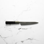 The Petty knife, a quintessential tool in Japanese cuisine, is a smaller utility knife used for precise, delicate tasks. Often considered a smaller sibling to the chef's knife, it excels in hand-held tasks like peeling, trimming, and intricate cutting. Its versatility makes it an essential for detailed culinary work.