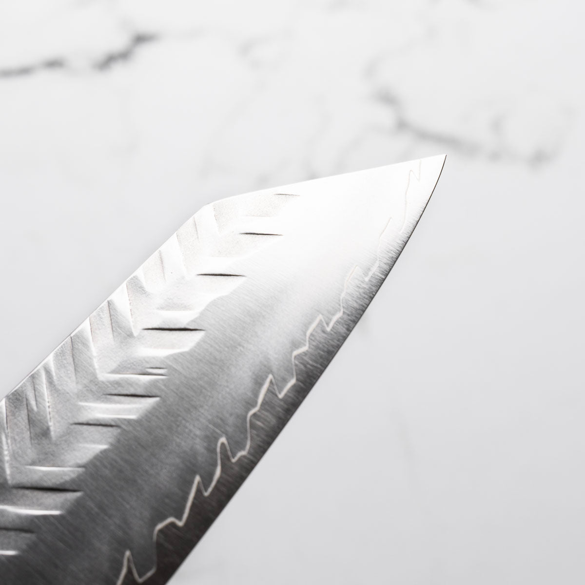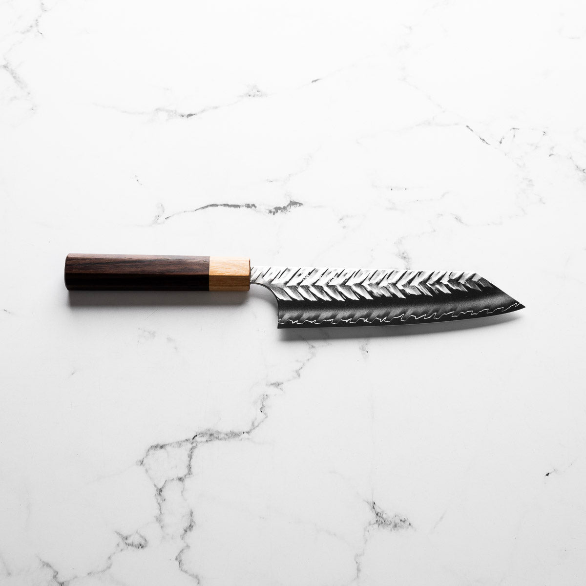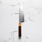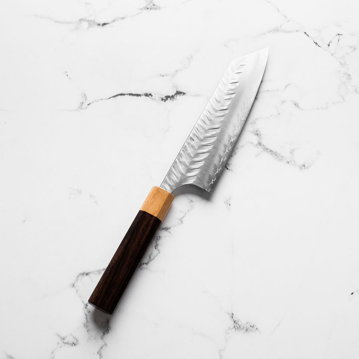 The Bunka knife, a versatile and traditional Japanese kitchen tool, features a distinctive, angular tip and a wide blade. It's designed for precision tasks like slicing, dicing, and chopping. Ideal for handling vegetables, meat, and fish, the Bunka is a multifunctional knife celebrated for its utility and unique aesthetic.