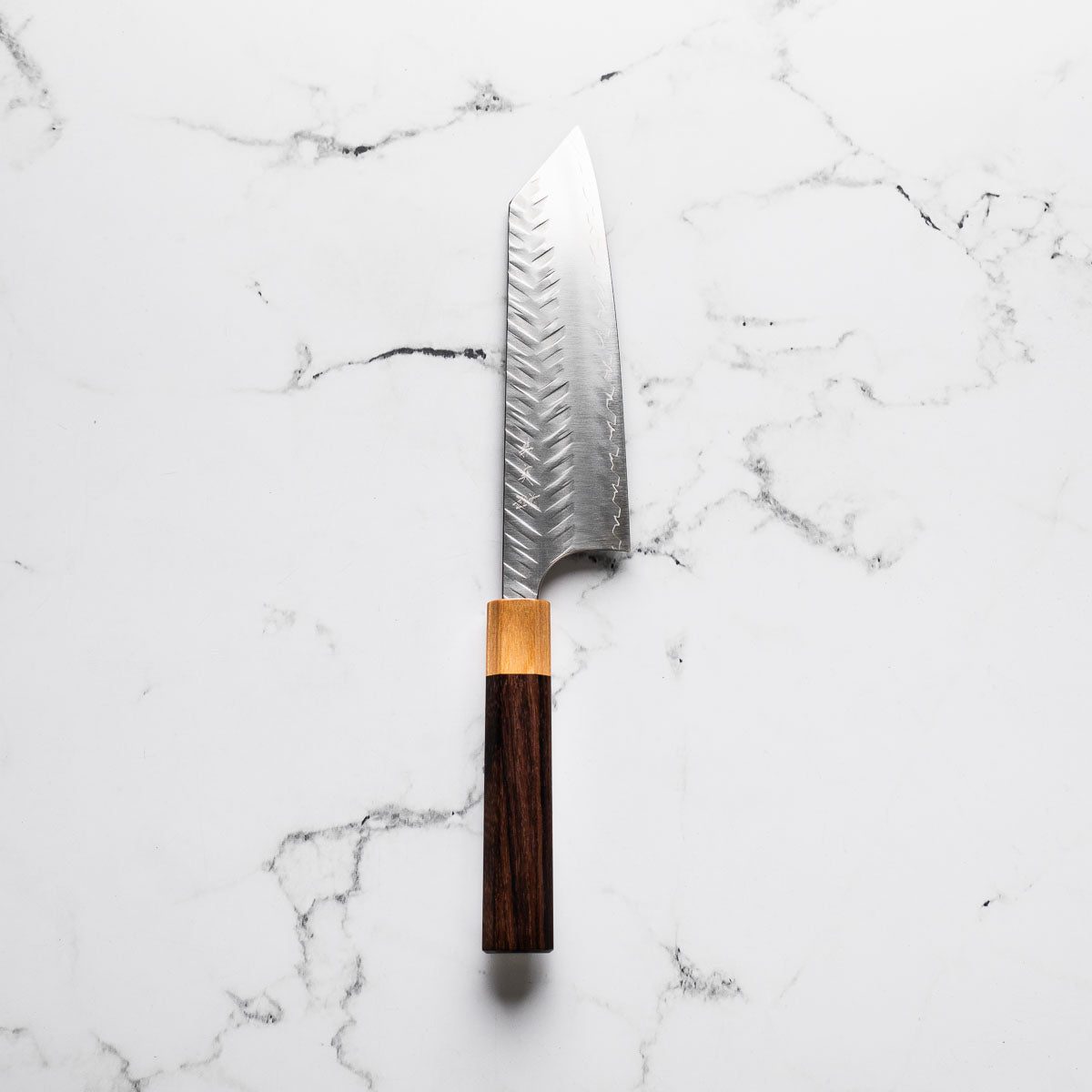 Under his personal brand Kintaro, he hand-forges blades featuring some of the most striking Damascus patterns we’ve seen, with crisp lines and elegant finishes. His knives are lightweight, thin behind the edge, and a pleasure to sharpen and maintain — a combination that makes them equally suited to professional kitchens and passionate home cooks.