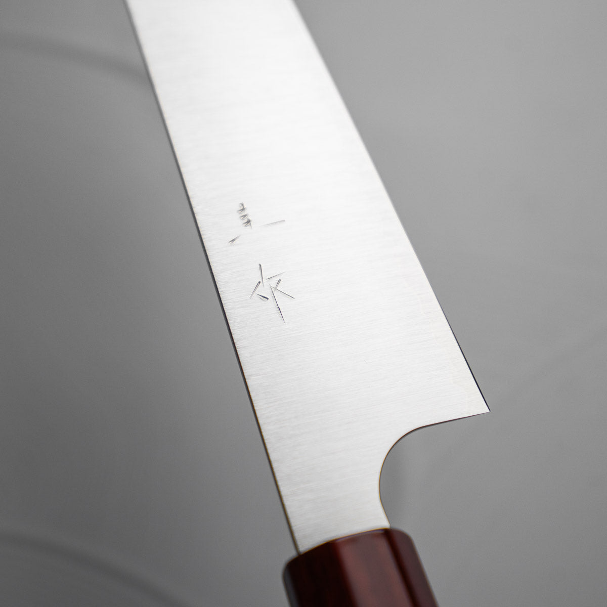 After sharpening many knives for some of the top Japanese Blacksmiths, Kobayashi-San decided to create his own kitchen knives. His knife range is now among the most popular in Japan. These are true lasers, extremely thin, light, and use SG2 as the core steel.