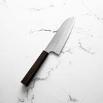 The Santoku knife, a classic in Japanese kitchens, translates to "three virtues," symbolizing its proficiency in slicing, dicing, and mincing. With a shorter, versatile blade and a balanced design, it's ideal for a range of tasks, from cutting meat to chopping vegetables, making it a beloved all-purpose tool.