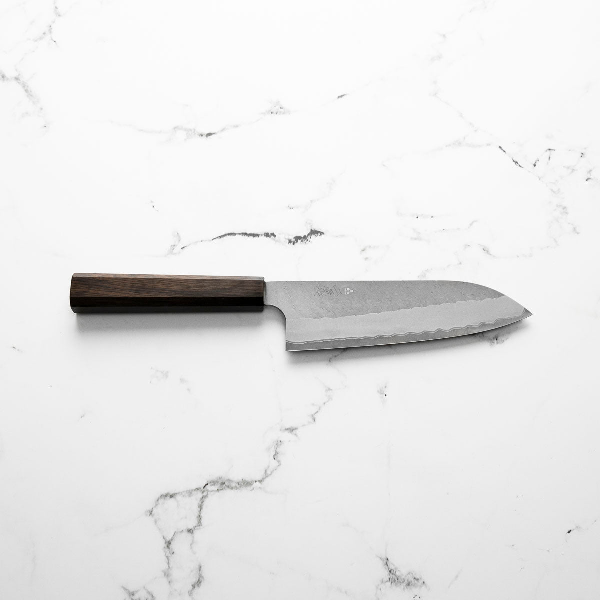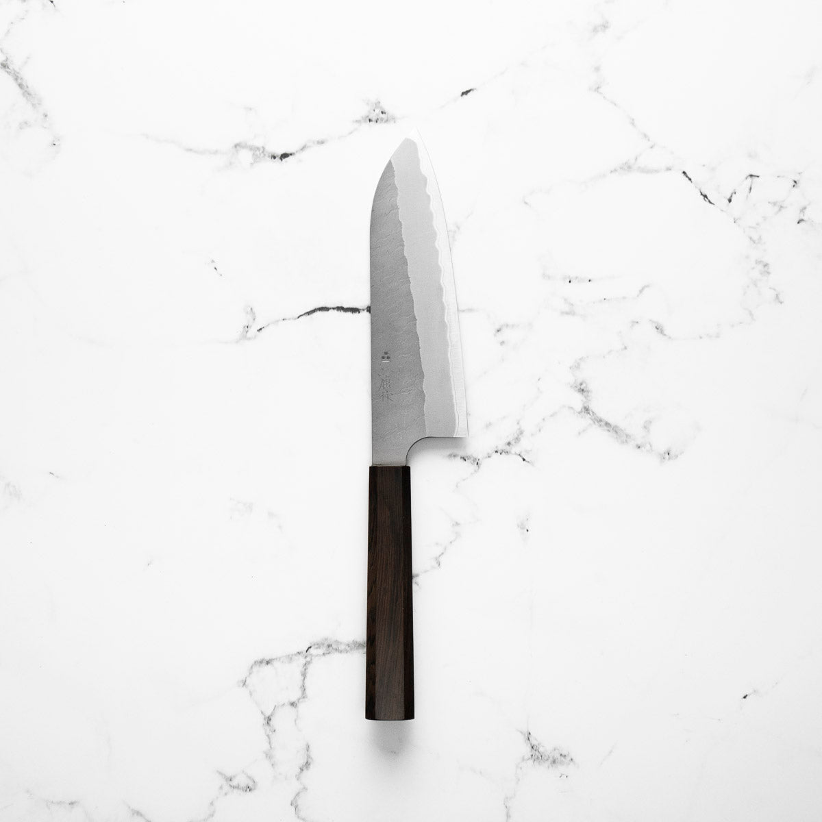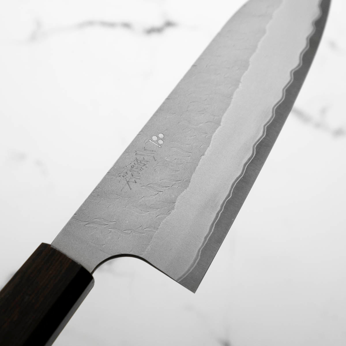 Nigara Hamono Blue Super Migaki Tsuchime Santoku 180mm - Ebony