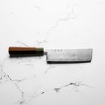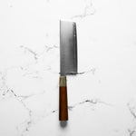 The Nakiri knife, revered in Japanese culinary traditions, is engineered for exceptional vegetable cutting. Featuring a distinct, straight-edged, and rectangular blade, it excels in creating uniform, precise cuts and aesthetic presentation. Its technical design ensures efficiency and precision, making it a valuable tool for both professional chefs and home cooks.