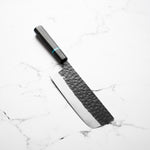 The Nakiri knife, revered in Japanese culinary traditions, is engineered for exceptional vegetable cutting. Featuring a distinct, straight-edged, and rectangular blade, it excels in creating uniform, precise cuts and aesthetic presentation. Its technical design ensures efficiency and precision, making it a valuable tool for both professional chefs and home cooks.