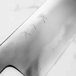 Japanese Ginsan steel, also known as Silver-3 or G3, is an underrated high-grade semi-stainless steel loved by many for being in the ‘goldilocks zone’ of knife steels. It holds a very respectable edge, but is effortless to sharpen. It is considered the semi-stainless version of White 2. It is the knife steel of choice for many home cooks and professional chefs alike.
