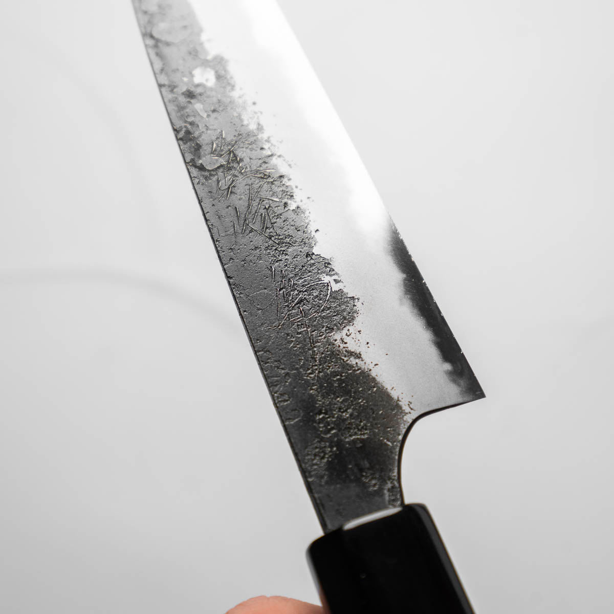 | Blade Material: | White 2 Carbon Steel core + Soft Iron Nashiji Clad |
