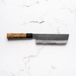 The Nakiri knife, revered in Japanese culinary traditions, is engineered for exceptional vegetable cutting. Featuring a distinct, straight-edged, and rectangular blade, it excels in creating uniform, precise cuts and aesthetic presentation. Its technical design ensures efficiency and precision, making it a valuable tool for both professional chefs and home cooks.
